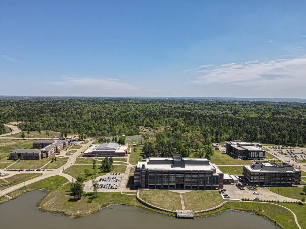 In June of 2010, this project was ranked #34 in the list of top projects in the state of Texas and Louisiana. The Library is a four-story 187,612 square foot building providing student services, offices and classroom space. The 14,612 square feet physical plant was designed to be the first component of the campus infrastructure loop. This 58.7 million dollar project was under the management of Gilbane Building Company and the drywall contractor was Marek Brothers Commercial.